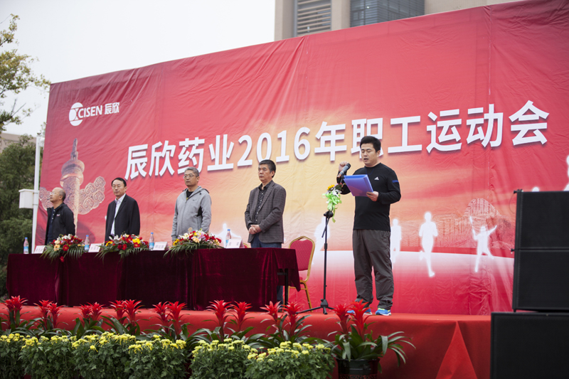 开幕由韩延振副总经理主持,杜振新董事长发表了热情洋溢的致辞。杜总首先代表辰欣药业党委向本次运动会的召开表示热烈的祝贺!向筹备此次运动会付出辛勤劳动的后勤保障人员、向积极参与本次运动会的全体裁判员、运动员致以衷心的感谢!他指出,长期以来,辰欣药业坚持在经济发展的同时,始终不忘坚持以人为本的理念,通过各种形式开展丰富多彩的文体活动,活跃了公司的文化氛围,丰富了广大职工的业余文化生活。举办此次运动会是公司长期坚持以人为本理念的延续和创新,意在进一步丰富辰欣职工的文体生活,增强员工团结拼搏、争创一流的精神,锻炼职工强健的体魄,打造一支强健而高素质的职工队伍,促使辰欣药业企业文化建设事业再上新的水平!杜总最后希望全体运动员、裁判员和工作人员坚持友谊第一、比赛第二、公平竞争的原则,遵守赛场纪律、遵守比赛规则,顽强拼搏、勇于争先、赛出风格、赛出水平,以优异的成绩展现出辰欣职工良好的精神面貌,努力把这次运动会办成团结鼓劲、凝聚人心、促进发展的盛会,不断将公司“推陈出新、诚实守信”的理念发扬光大。随后,运动员代表、裁判员代表分别进行了宣誓。